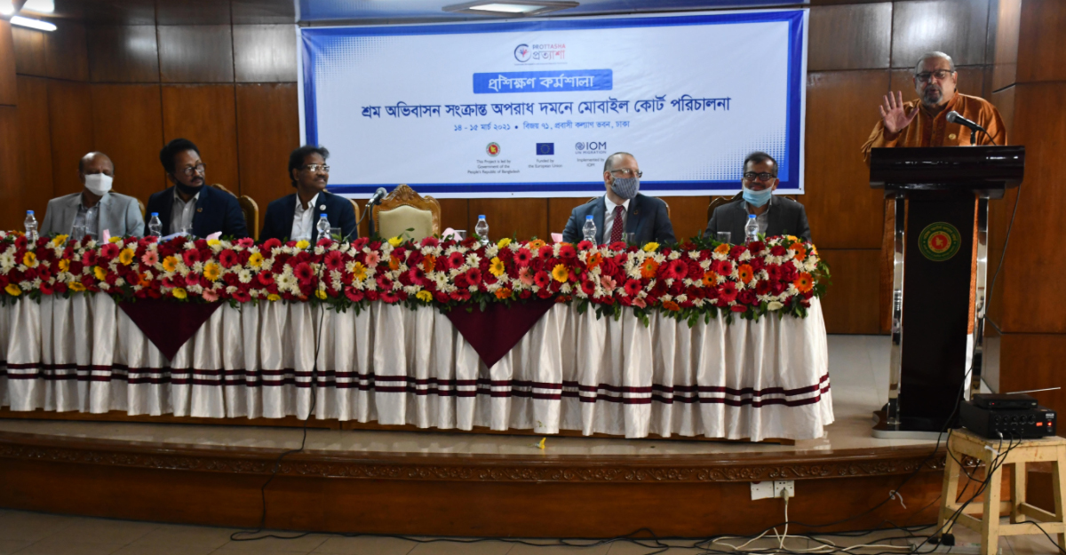 রোববার (১৪ মার্চ) প্রবাসী কল্যাণ ভবনে মন্ত্রণালয় ও ইন্টারন্যাশনাল অর্গানাইজেশন ফর মাইগ্রেশন (আইওএম) কর্তৃক নির্বাহী ম্যাজিস্ট্রেটদের জন্য আয়োজিত ‘শ্রম অভিবাসন সংক্রান্ত অপরাধ দমনে মোবাইল কোর্ট পরিচালনা’ শীর্ষক দুই দিনব্যাপী কর্মশালা উদ্বোধনে মন্ত্রী এসব কথা বলেন।
