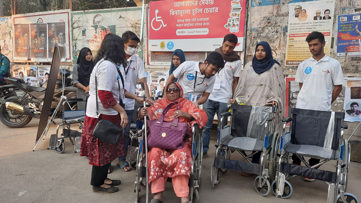 বিশেষ চাহিদা সম্পন্নদের জন্য বইমেলায় বিনামূল্যে হুইলচেয়ার সেবা