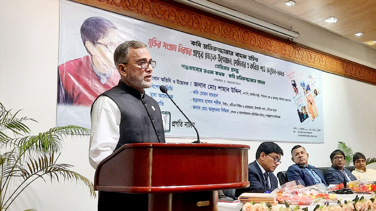 বুধবার (৮ ফেব্রুয়ারি) জাতীয় যাদুঘরের কবি সুফিয়া কামাল মিলনায়তনে কবি মনিরুজ্জামান বাদল রচিত ‘মুক্তির সংগ্রাম নিরন্তর’ গ্রন্থের মোড়ক উন্মোচন, সেমিনার ও কবিতা পাঠ উপলক্ষে আয়োজিত অনুষ্ঠানে তিনি এ কথা বলেন।