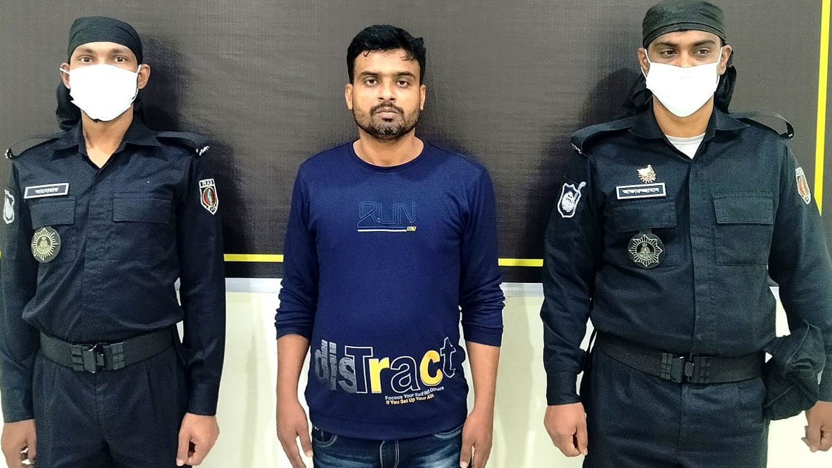রোববার (১২ ফেব্রুয়ারি) র্যাব-১০ এর একটি দল গোপন সংবাদের ভিত্তিতে রাজধানীর বিমানবন্দর থানাধীন বিমানবন্দর রেলস্টেশন এলাকা থেকে তাকে গ্রেপ্তার করে। এসময় তার কাছ থেকে ২টি মোবাইল ফোন উদ্ধার করা হয়।