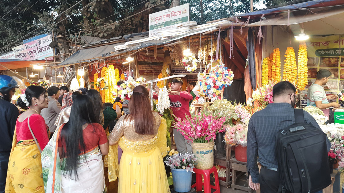 বসন্ত ও ভালোবাসা দিবস ঘিরে সরগরম ফুলের বাজার