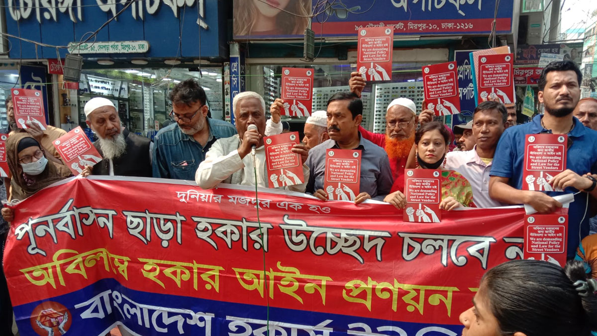 শনিবার (১৮ ফেব্রুয়ারি) মিরপুর ১০ নম্বর গোল চত্বরে লেবার অ্যাট ইনফরমাল ইকোনমি, বাংলাদেশ হকার সংগ্রাম পরিষদ এবং বাংলাদেশ হকার্স ইউনিয়নের যৌথ উদ্যোগে আয়োজিত এক কর্মসূচি থেকে এ দাবি জানানো হয়।