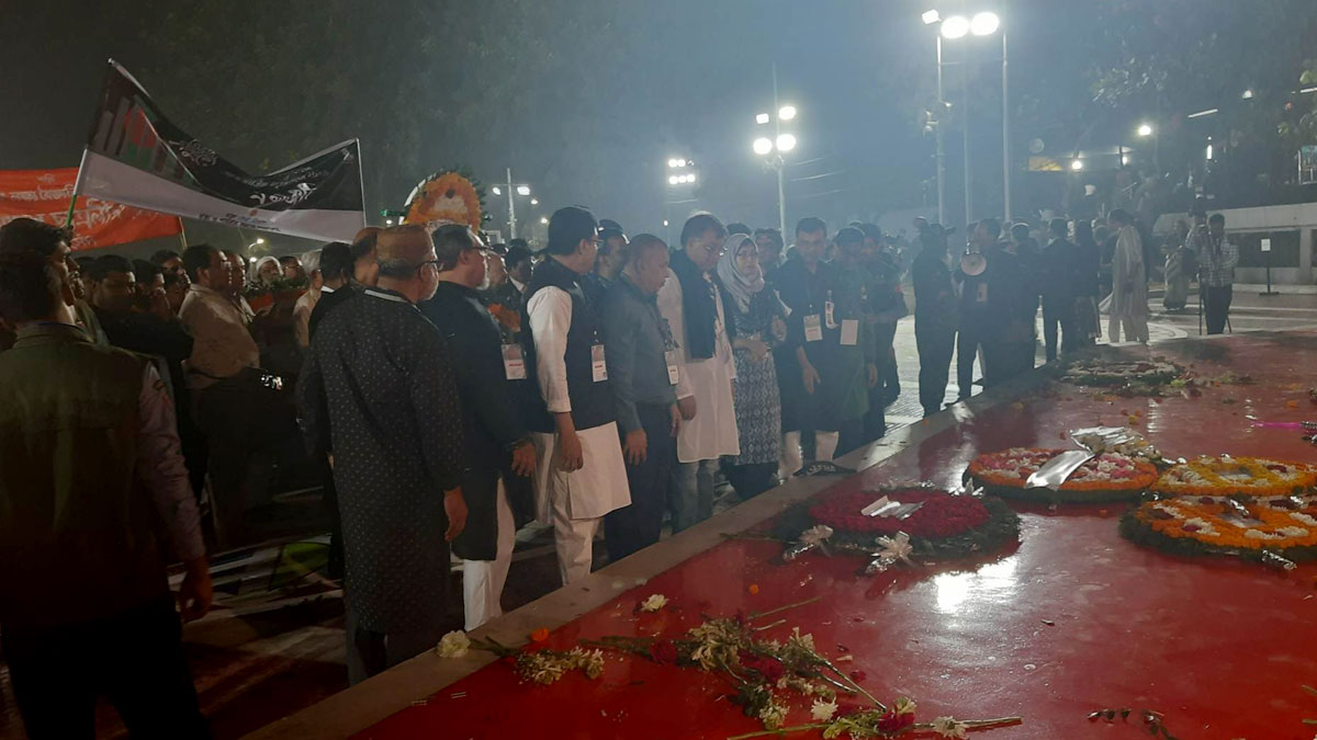 ঢাকা দক্ষিণ সিটি কর্পোরেশনের মেয়র শেখ ফজলে নূর তাপস, ঢাকা উত্তর সিটি কর্পোরেশনের মেয়র মো. আতিকুল ইসলামও প্রথম প্রহরে শ্রদ্ধা জানাতে আসেন।