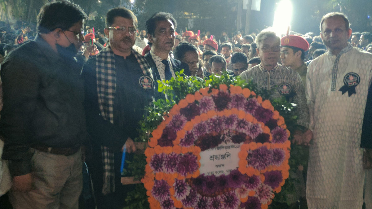 একুশের প্রথম প্রহরে শহীদ মিনারে ঢাকা কলেজের শ্রদ্ধার্ঘ্য