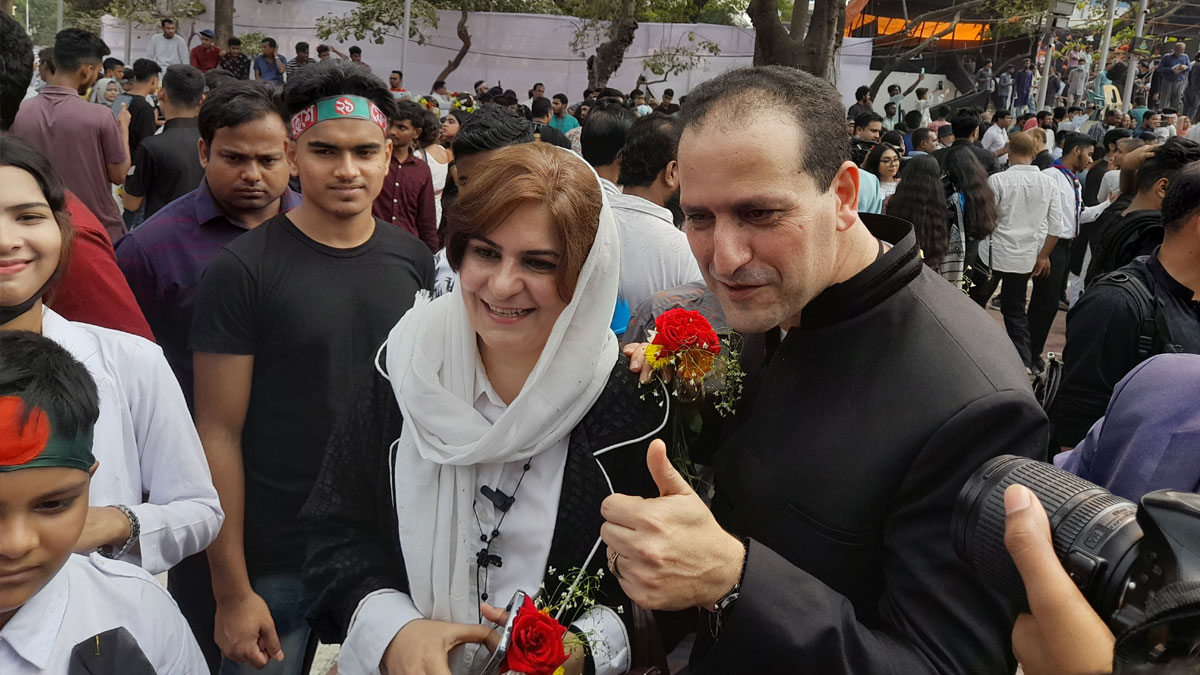 আন্তর্জাতিক মাতৃভাষা দিবস উপলক্ষে ভাষা শহীদদের প্রতি শ্রদ্ধা জানাতে এসেছেন ইরানি দম্পতি নাজিজ উইয়ান ও নাহিয়ান।