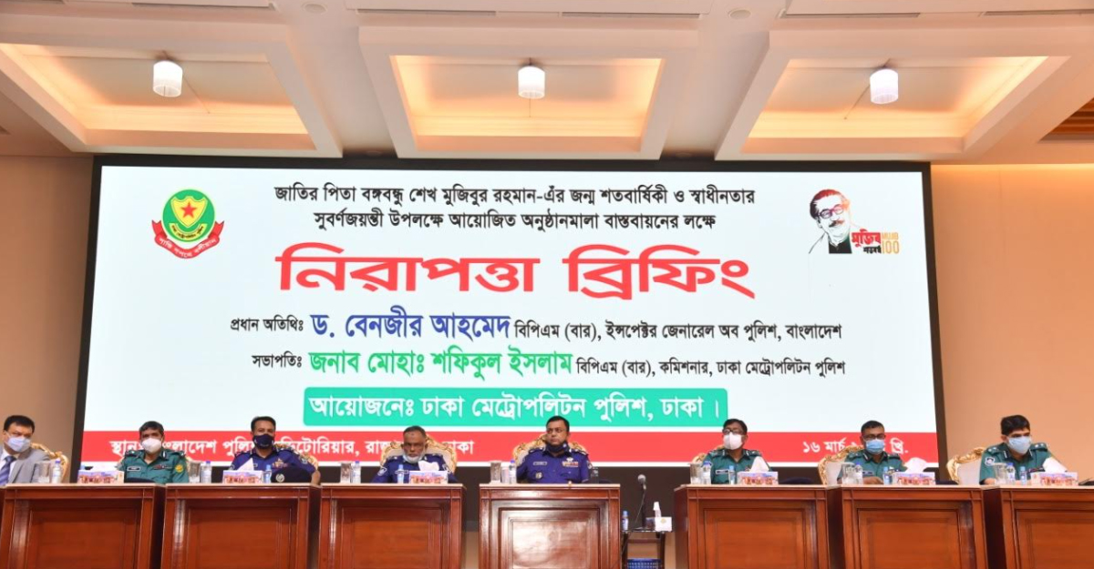 পুলিশ মহাপরিদর্শক (আইজিপি) ড. বেনজীর আহমেদ বলেছেন, বঙ্গবন্ধুর জন্মশতবার্ষিকী ও স্বাধীনতার সুবর্ণজয়ন্তী উপলক্ষে ১৭ মার্চ থেকে ২৬ মার্চ পর্যন্ত বিভিন্ন দেশের রাষ্ট্র ও সরকার প্রধানরা ঢাকায় আসবেন। দেশ ও জাতির জন্য এ ধরনের সফর অত্যন্ত সম্মান ও গর্বের। বিদেশি গুরুত্বপূর্ণ অতিথিদের নিরাপত্তায় পর্যাপ্ত নিরাপত্তা ব্যবস্থা নেওয়া হয়েছে। প্রতিটি ভেন্যু নিরাপত্তা চাদরে ঢেকে দেওয়া হবে।