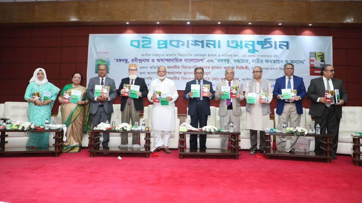 বুধবার (১ ফেব্রুয়ারি) সন্ধ্যায় আপিল বিভাগের বিচারপতি ওবায়দুল হাসানের লেখা ‘বঙ্গবন্ধু-রবীন্দ্রনাথ অসাম্প্রদায়িক বাংলাদেশ’ ও তার সহধর্মিনী নাফিসা বানুর লেখা ‘বঙ্গবন্ধু শুদ্ধাচার নারীর ক্ষমতায়ন ও অন্যান্য’ বইয়ের প্রকাশনা অনুষ্ঠানে তিনি এসব কথা বলেন।