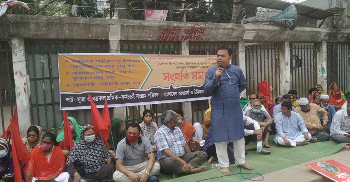 আরও বলা হয়, সরকার কি পারবে সচিবালয়ের ২০ জন সচিবকে চাকরিচ্যুত করে বেতন আটকে রাখতে? কোনো একটি বাহিনী বা পুলিশের ২০০ জনকে চাকরিচ্যুত করে তাদের বেতন আটকে রাখতে। সেটি সম্ভব নয়। কারণ সরকার এদের ওপর ভর করে টিকে আছে। পাটকল, চিনিকল বন্ধ করা যাবে না। আমাদের দেশে চিনির ভোক্তার সংখ্যা কমেনি। আমরা তো চিনি খাওয়া ছেড়ে দেইনি। তাহলে আমাদের এখানের চিনিকলগুলোতে লোকসান কেন হয়? সরকারের নীতির কারণে পাটকল চিনিকলে লোকসান যায়। আর এর দায় চাপানো হচ্ছে সাধারণ শ্রমিকদের ওপর।