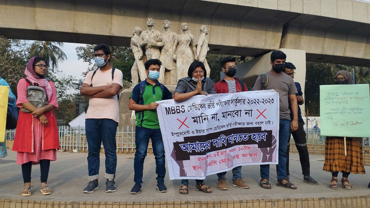 শিক্ষার্থীদের দাবি অনুযায়ী, শুক্রবার (১০ মার্চ) সকাল ১০টায় মেডিকেলে ভর্তি পরীক্ষা হলেও স্বাস্থ্য অধিদপ্তরের একটি বিজ্ঞপ্তি প্রদানের ফলে দীর্ঘ এক বছর ধরে মেডিকেল প্রস্তুতি নেওয়া শিক্ষার্থীরা পরীক্ষায় বসার অযোগ্য বলে বিবেচিত হয়। ফলে তারা এক হাজার টাকা দিয়ে ভর্তির আবেদন সত্ত্বেও পরীক্ষার এডমিট কার্ড উত্তোলন করতে পারেনি। ফলে নিজেদের অন্ধকার ভবিষ্যতের চিন্তা করে ঢাবির রাজু ভাস্কর্যের পাদদেশে একদল শিক্ষার্থী আন্দোলনের মাধ্যমে নিজেদের মতামত স্বাস্থ্য অধিদপ্তর বরাবর উপস্থাপন করেন।