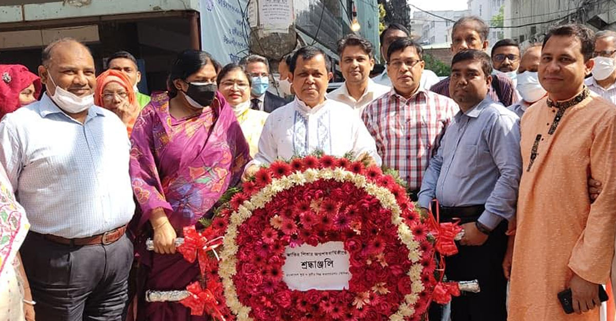 এরপর সকাল ১০টায় শিল্পমন্ত্রী, প্রতিমন্ত্রী, শিল্প সচিব, বিসিক চেয়ারম্যান, ও শিল্প মন্ত্রণালয়ের আওতাধীন দফতর ও সংস্থার প্রধানরা শিল্প মন্ত্রণালয় প্রাঙ্গণে স্থাপিত জাতির পিতার ম্যুরালে ফুল দিয়ে শ্রদ্ধা নিবেদন করেন। এসময় বিসিক প্রধান কার্যালয়, আঞ্চলিক কার্যালয় (ঢাকা) ও ঢাকা জেলা কার্যালয়ের বিভিন্ন স্তরের কর্মকর্তারা উপস্থিত ছিলেন।