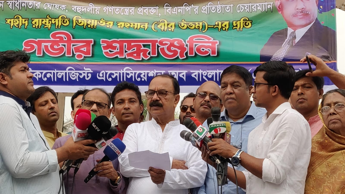 শুক্রবার (১০ মার্চ) রাজধানীর শেরেবাংলা নগরে বিএনপির প্রতিষ্ঠাতা জিয়াউর রহমানের মাজারে শ্রদ্ধা নিবেদন শেষে তিনি এসব কথা বলেন। বিএনপির পেশাজীবি সংগঠন মেডিকেল টেকনোলজিস্ট অ্যাসোসিয়েশন অব বাংলাদেশের ১৭তম প্রতিষ্ঠাবার্ষিকী উপলক্ষ্যে মাজারে শ্রদ্ধা নিবেদন ও মোনাজাত করা হয়।