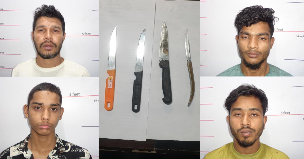 গ্রেপ্তাররা হলেন— মো. ওমর (১৬), মো. উজ্জল হোসেন তালুকদার (২৬), মো. মিজান (২৪) ও মো. নয়ন (২৬)। গ্রেপ্তারের সময় তাদের কাছ থেকে তিনটি চাকু ও একটি ছোরা জব্দ করা হয়।