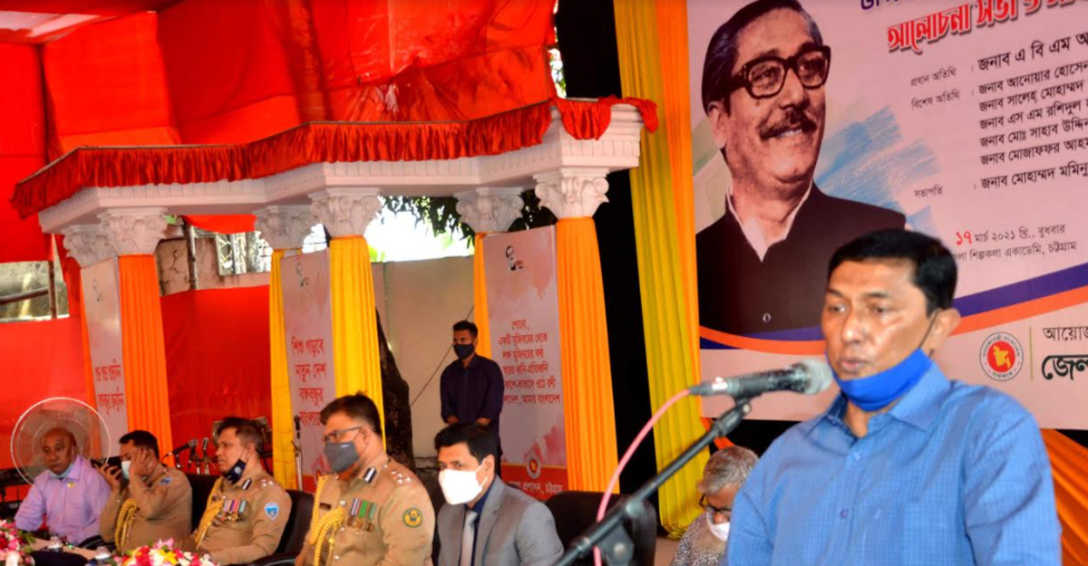 জেলা প্রশাসনের আয়োজনে আলোচনা সভায় চট্টগ্রামের বিভাগীয় কমিশনার এ বি এম আজাদ বলেন, বঙ্গবন্ধু আমাদেরকে জাতীয় পতাকা ও একটি ভূখণ্ড এনে দিয়েছিলেন। আজকের দিনে অঙ্গীকার হচ্ছে জাতীর পিতার সুযোগ্য কন্যার নেতৃত্বে বাংলাদেশের অর্থনৈতিক মুক্তি আনা। আমাদের শিশুরা জাতির পিতার আদর্শ ধারণ করবে।