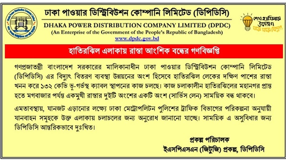 সাময়িক এ অসুবিধার জন্য ডিপিডিসি আন্তরিকভাবে দুঃখ প্রকাশ করেছে বিজ্ঞপ্তিতে।