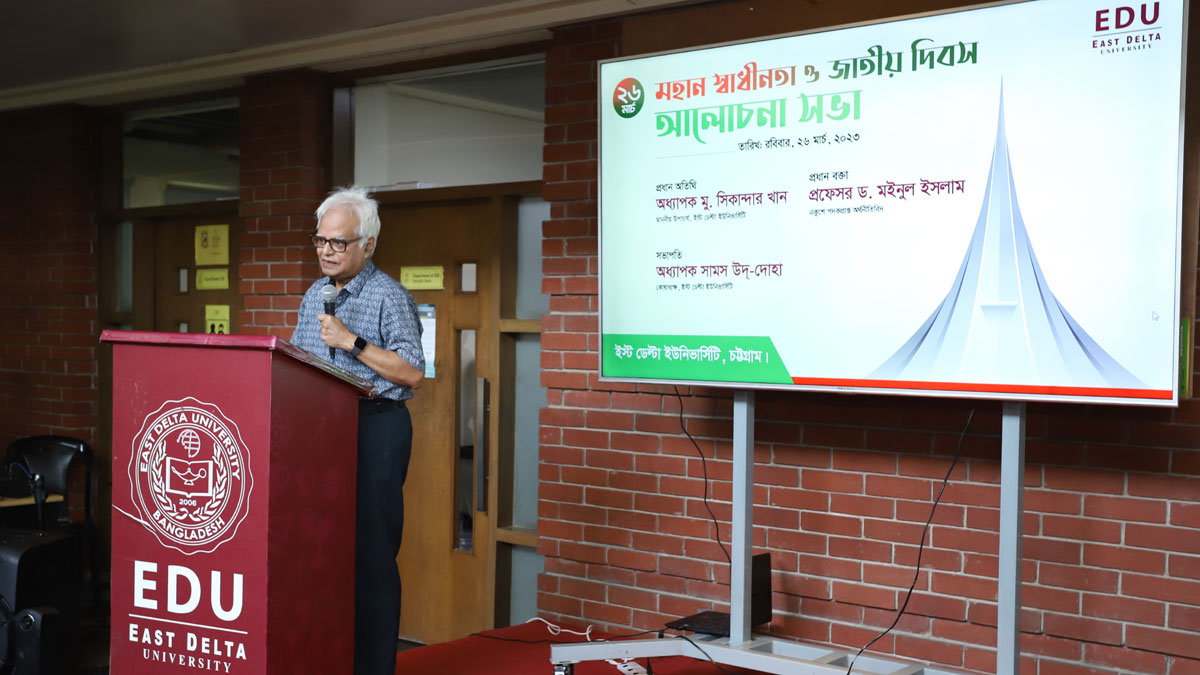 প্রধান বক্তার ভাষণে প্রফেসর ড. মইনুল ইসলাম বলেন, স্বাধীনতার ৫২ বছর পরেও আমরা এর সুফল পুরোপুরি ভোগ করতে পারছি না। পশ্চিম পাকিস্তানের শোষণ ও অত্যাচার থেকে আমরা মুক্তি পেয়েছি ঠিকই, কিন্তু সামাজিক-অর্থনৈতিক বৈষম্য থেকে আমরা এখনো মুক্ত হতে পারিনি।