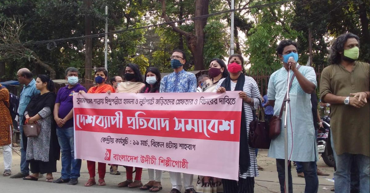 শাল্লায় হামলার প্রতিবাদে শাহবাগে উদীচীর সমাবেশ