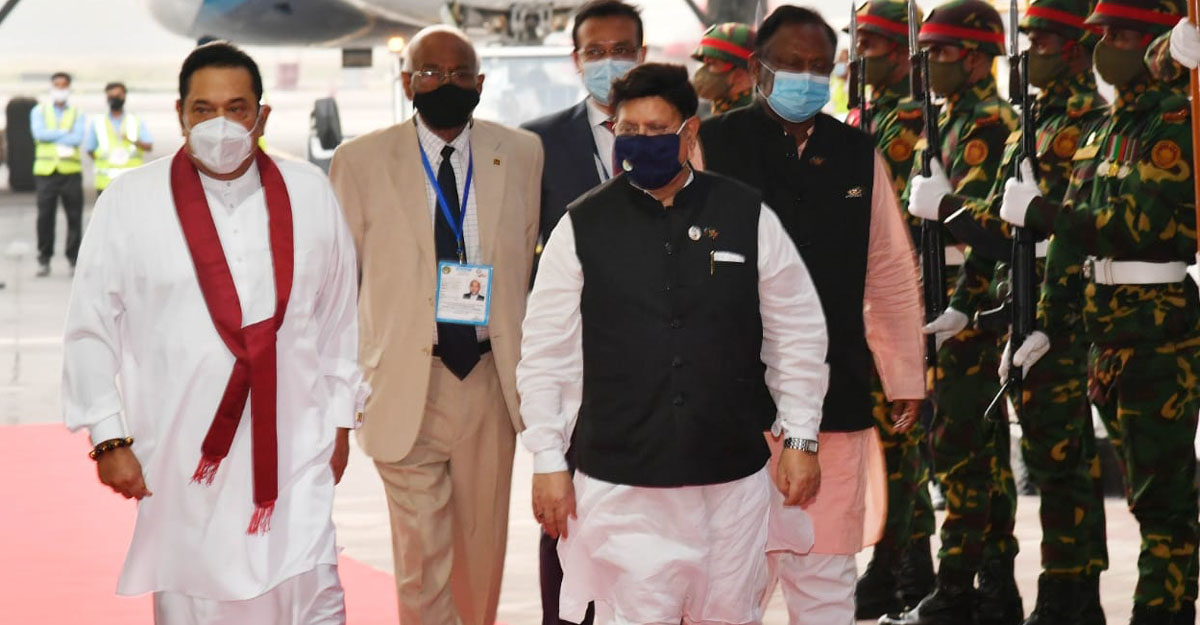 এর আগে শুক্রবার সকালে ঢাকায় আসেন শ্রীলঙ্কার প্রধানমন্ত্রী মাহিন্দা রাজাপাকসে। সফরের শুরুতে সাভারে জাতীয় স্মৃতিসৌধে বীর শহীদদের প্রতি শ্রদ্ধা নিবেদন করেন তিনি। বিকেলে জাতীয় প্যারেড স্কয়ারে বঙ্গবন্ধুর জন্মশতবার্ষিকী ও স্বাধীনতার সুবর্ণজয়ন্তীর অনুষ্ঠানে যোগ দিয়ে বক্তব্য রাখেন রাজাপাকসে। বক্তৃতায় বঙ্গবন্ধু, বাংলাদেশ-শ্রীলঙ্কার সম্পর্কসহ তুলে আনেন প্রধানমন্ত্রী শেখ হাসিনার নেতৃত্বে বাংলাদেশের অর্থনৈতিক প্রবৃদ্ধির চিত্র। এরপর সন্ধ্যায় রাজধানীর হোটেল ইন্টারকন্টিনেন্টালে প্রধানমন্ত্রী শেখ হাসিনা আয়োজিত একটি সাংস্কৃতিক অনুষ্ঠানে যোগ দেন তিনি।