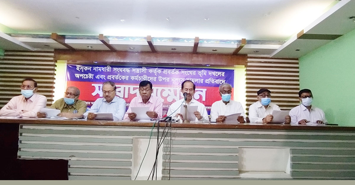 সংবাদ সম্মেলনে লিখিত বক্তব্যে সংঘের সম্পাদক তিনকড়ি চক্রবর্তী বলেন, প্রবর্তকের সম্পত্তি সদ্ব্যবহার করার জন্য আমরা প্রতিশ্রুতিবদ্ধ। এ সম্পত্তির যথেচ্ছ ব্যবহারে অনুমতি দিতে পারি না। ইসকনের সঙ্গে চুক্তি মোতাবেক জমি ও সংশ্লিষ্ট সব স্থাপনার মালিকানা প্রবর্তকের নিকট সংরক্ষিত থাকবে। ইসকন কর্তৃপক্ষ বা তাদের মনোনীত ব্যক্তি কোনোভাবেই প্রবর্তক সংঘের স্বার্থবিরোধী এবং সম্পত্তির নিরাপত্তা বিঘ্ন করার মতো কোনো কাজে লিপ্ত থাকতে পারবে না। প্রবর্তক সংঘ মনে করছিল, ইসকন তাদের স্বাক্ষরিত দালিলিক শর্তাদি পালন করবে। কিন্তু দীর্ঘ সময় অতিবাহিত হওয়ার পর বর্তমান সময়ে এসে তাদের ভিন্নরূপ পরিলক্ষিত হয় যা সম্প্রসারণমূলক, আগ্রাসী, আইন অমান্যসূচক, চুক্তিবিরোধী, প্রবর্তক স্বার্থবিরোধী, প্রকৃত ধর্মবিরোধী, সামাজিক ন্যায়নীতি বিরোধী এবং পেশিশক্তি প্রদর্শনের আধারস্বরূপ।