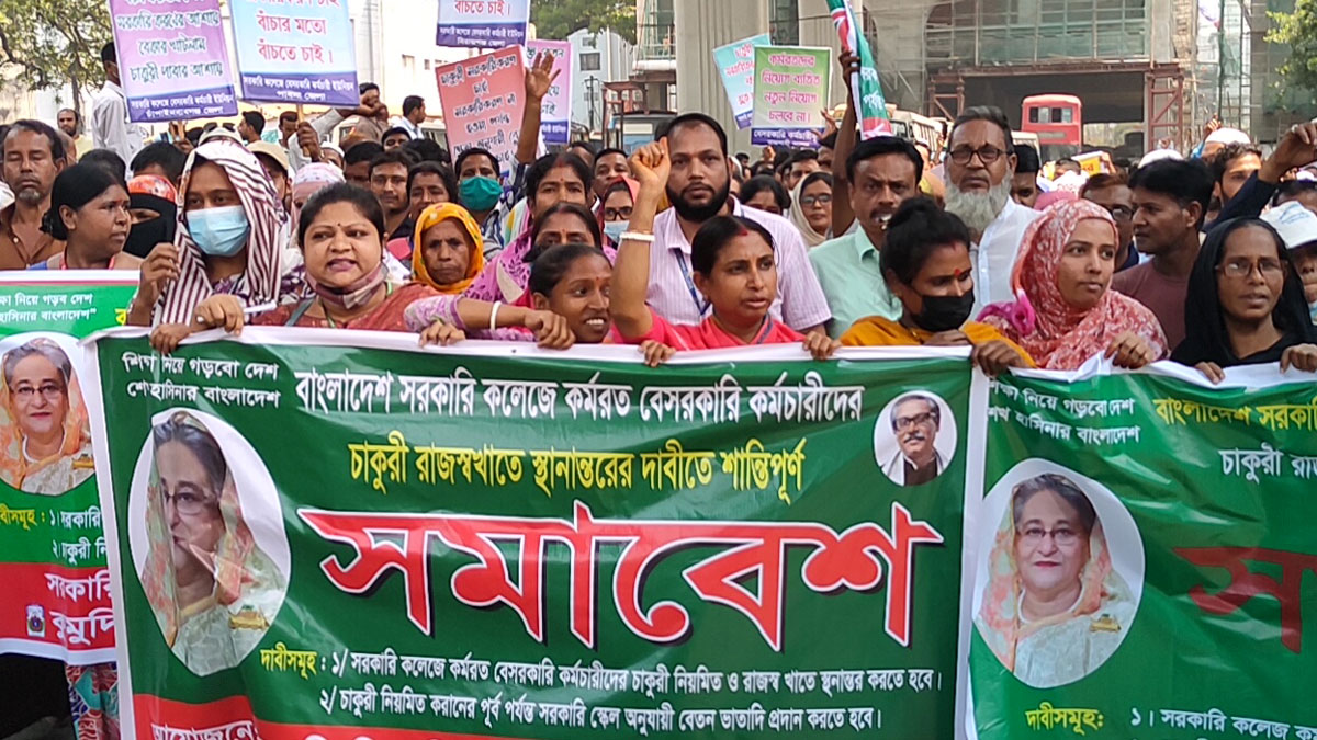 চাকরি জাতীয়করণের দাবি সরকারি কলেজের বেসরকারি কর্মচারীদের