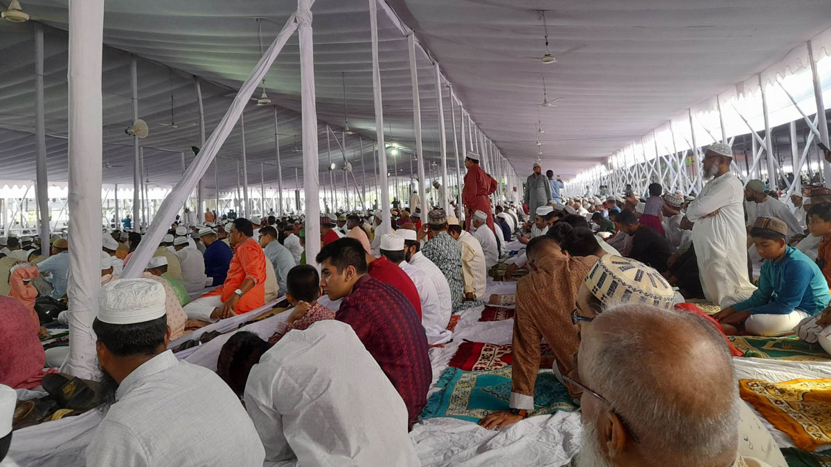 রাজধানীর জাতীয় ঈদগাহ ময়দানে ঈদের প্রধান জামাত অনুষ্ঠিত হয়েছে। মোনাজাতে দেশ ও জাতির কল্যাণ কামনা, বিশ্বশান্তি, পারস্পরিক ভ্রাতৃত্ব ও উন্নত আখলাক গড়া, আল্লাহর কাছে নিজেদের রাগকে বশ, নাফরমানিকে ঘৃণা, ভালোবাসা ছড়িয়ে বিশ্ব মুসলিম ভাতৃত্ব গড়ার বিশেষ আর্জি জানানো হয়।