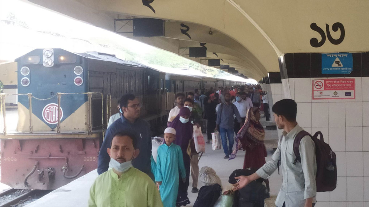 সোমবার (২৪ এপ্রিল) ঢাকা রেলওয়ে স্টেশন ঘুরে এমন চিত্র দেখা গেছে।