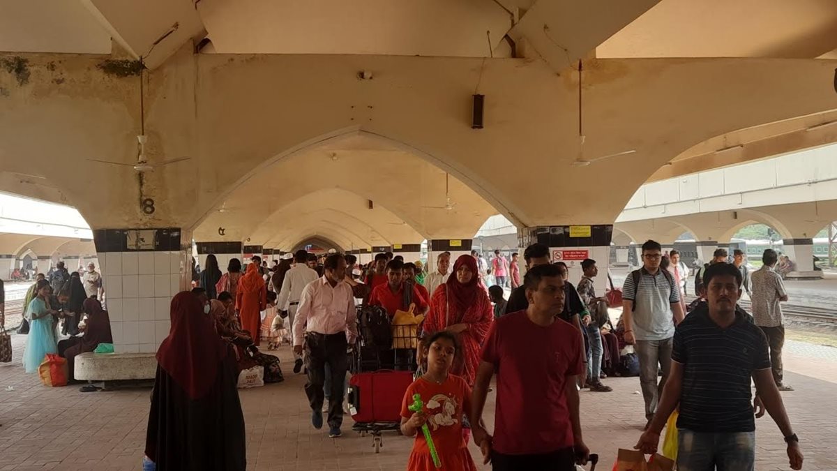 শুক্রবার (২৮ এপ্রিল) সকালে ঢাকা রেলওয়ে স্টেশনে এমন চিত্র দেখা গেছে।