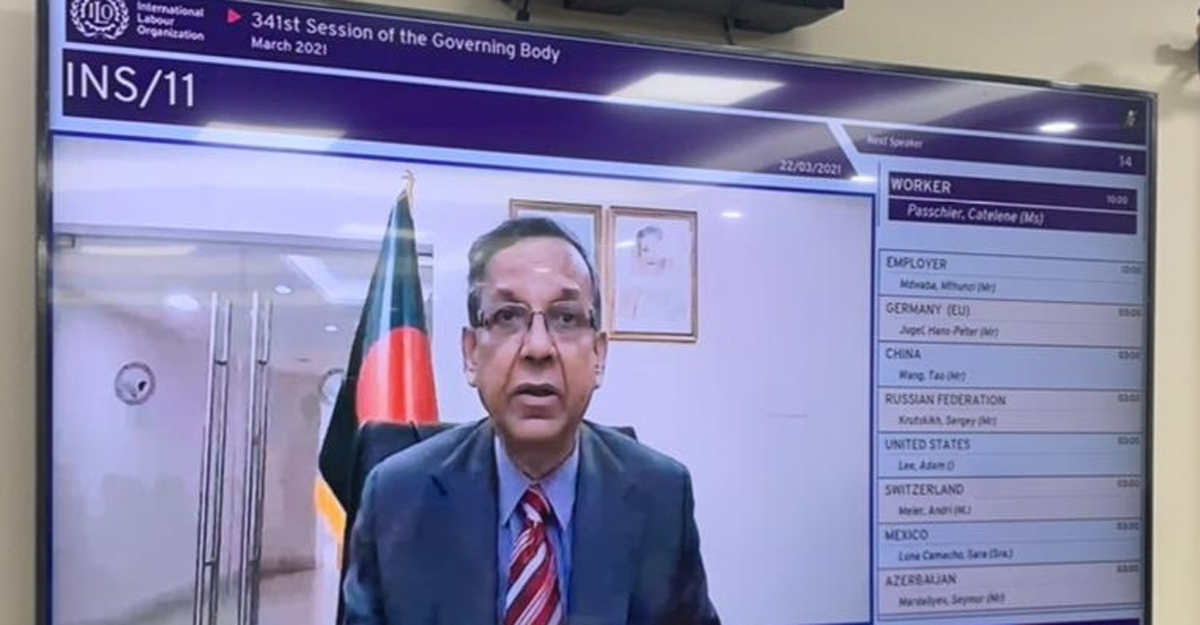 শ্রমজীবী মানুষের অধিকার রক্ষা ও উন্নয়নে আন্তর্জাতিক শ্রম সংস্থা (আইএলও)সহ আন্তর্জাতিক সম্প্রদায়ের সহযোগিতা কামনা করেছেন আইনমন্ত্রী আনিসুল হক। সোমবার (২২ মার্চ) রাতে আইএলওর গভর্নিং বডির ৩৪১তম সেশনে বাংলাদেশ প্রসঙ্গে আলোচনাকালে ভার্চুয়ালি বক্তব্যে এ সহযোগিতা কামনা করেন তিনি।