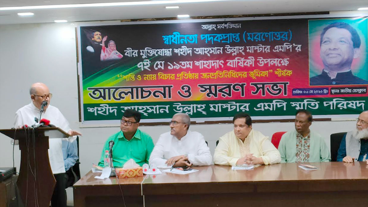 শনিবার (৭ মে) রাজধানীর জাতীয় প্রেস ক্লাবে শহীদ আহসান উল্লাহ মাস্টারের শাহাদাতবার্ষিকী উপলক্ষ্যে শান্তি ও ন্যায়বিচার প্রতিষ্ঠায় জনপ্রতিনিধিদের ভূমিকা শীর্ষক আলোচনা সভায় প্রধান অতিথির বক্তব্যে তিনি এসব কথা বলেন।