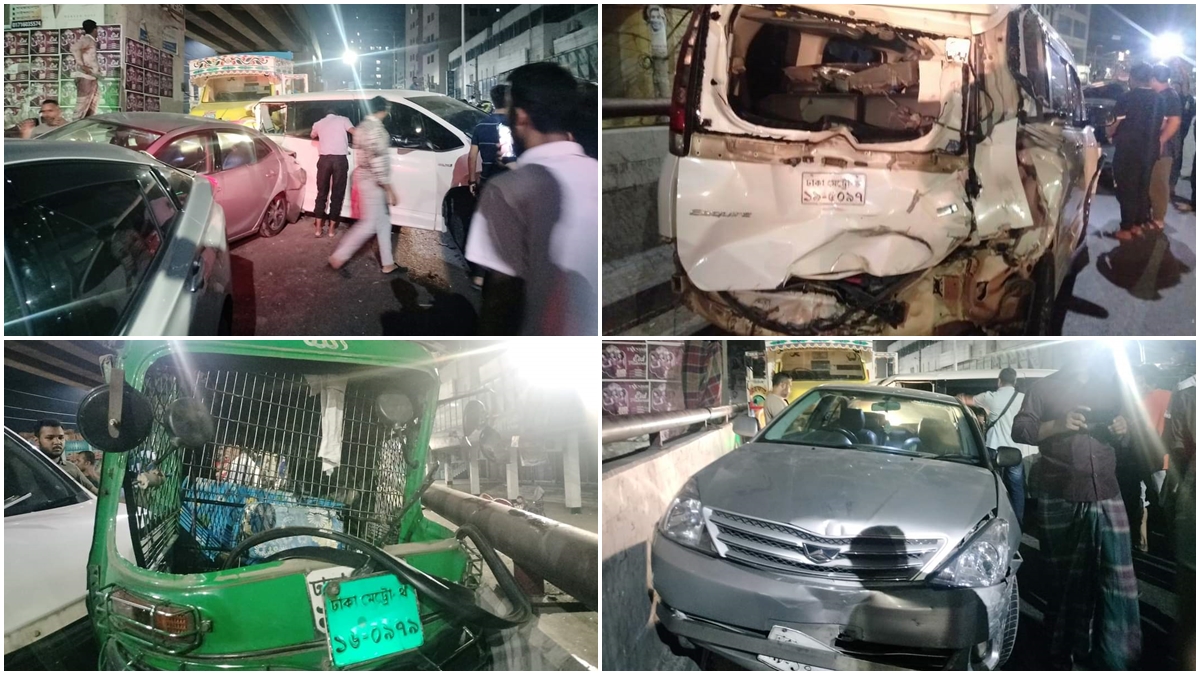 এ ব্যাপারে হাতিরঝিল থানার ইন্সপেক্টর (অপারেশন্স) আব্দুল কুদ্দুস বলেন, দুর্ঘটনার খবর পেয়ে ঘটনাস্থল থেকে আহতদের উদ্ধার করে হাসপাতালে পাঠানো হয়েছে। সড়ক সচল রাখতে ফ্লাইওভার থেকে গাড়িগুলো সরানো হয়েছে।