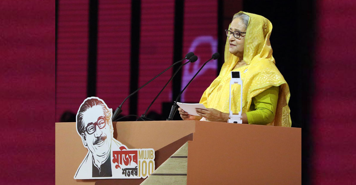 বুধবার (২৪ মার্চ) রাজধানীর জাতীয় প্যারেড স্কয়ারে বঙ্গবন্ধুর জন্মশতবার্ষিকী ও স্বাধীনতার সুবর্ণজয়ন্তী উদযাপন উপলক্ষে আয়োজিত অনুষ্ঠানে এ কথা বলেন প্রধানমন্ত্রী। ‘মুজিব চিরন্তন’ প্রতিপাদ্যে ১০ দিনব্যাপী এ অনুষ্ঠানের অষ্টম দিনের প্রতিপাদ্য ছিল ‘শান্তি, মুক্তি ও মানবতার অগ্রদূত’। প্যারেড স্কয়ারে বিশেষ অতিথি হিসেবে উপস্থিত ছিলেন- ভুটানের প্রধানমন্ত্রী লোটে শেরিং।