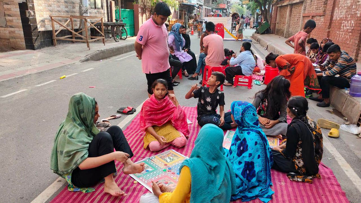 রাজধানীর মোহাম্মদপুরের বাবর রোডের বি- ব্লকের একটি অংশে গাড়ি চলাচল বন্ধ করে দেওয়া হয়েছে। এলাকাবাসী স্বেচ্ছায় এ ব্যবস্থা করেছেন। বন্ধ সড়কে শিশু-কিশোরদের কেউ বাইসাইকেল চালাচ্ছে, কেউ কেউ দলে দলে বসে ছবি আঁকছে, কেউবা আবার খেলছে।