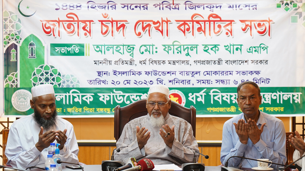 শনিবার (২০ মে) বাদ মাগরিব বায়তুল মুকাররম জাতীয় মসজিদের ইসলামিক ফাউন্ডেশন সভাকক্ষে জাতীয় চাঁদ দেখা কমিটির সভায় এ সিদ্ধান্ত নেওয়া হয়। এতে সভাপতিত্ব করেন ধর্ম প্রতিমন্ত্রী মো. ফরিদুল হক খান।