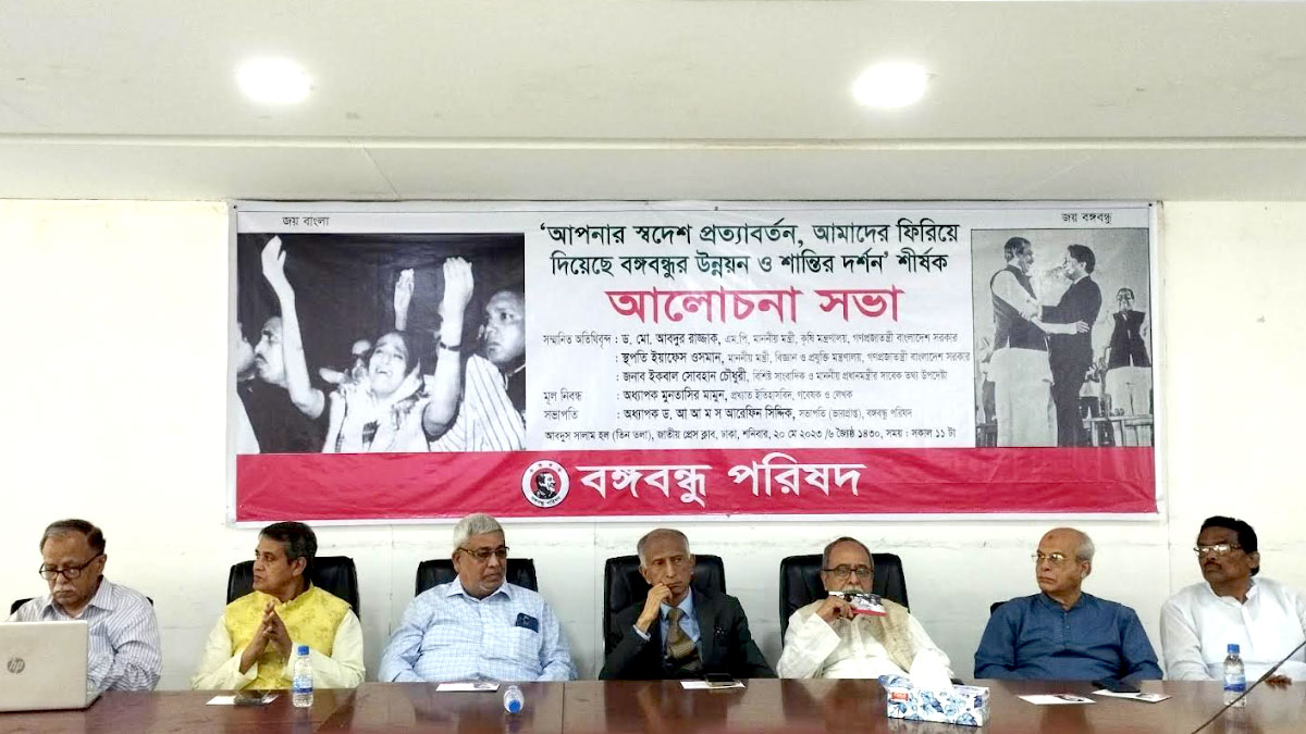 বঙ্গবন্ধু পরিষদের ভারপ্রাপ্ত সভাপতি অধ্যাপক ড. আ আ ম স আরেফিন সিদ্দিকের সভাপতিত্বে অনুষ্ঠিত আলোচনা সভায় অনলাইনে যুক্ত থেকে বক্তব্য প্রদান করেন আওয়ামী লীগের সভাপতিমন্ডলীর সদস্য এবং কৃষিমন্ত্রী ড. মো. আব্দুর রাজ্জাক। অনুষ্ঠানের মূল নিবন্ধ উপস্থাপন করেন চট্টগ্রাম বিশ্ববিদ্যালয়ের বঙ্গবন্ধু চেয়ার অধ্যাপক ড. মুনতাসীর মামুন।