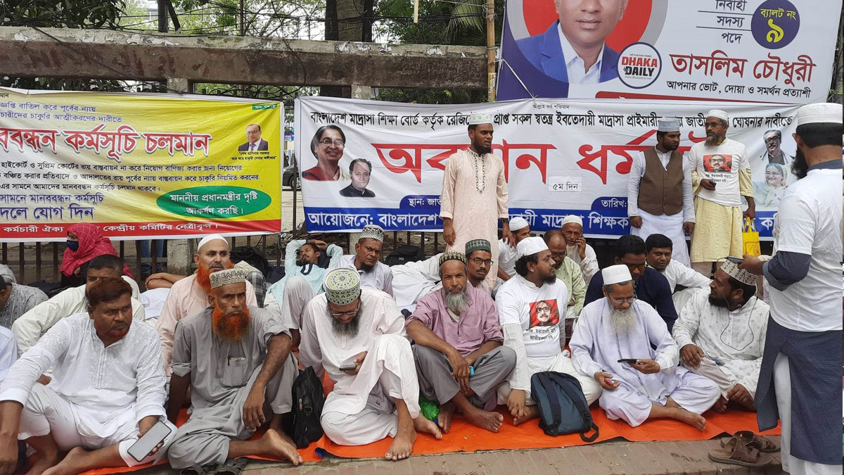 বাংলাদেশ মাদ্রাসা শিক্ষা বোর্ড থেকে রেজিস্ট্রেশনপ্রাপ্ত সব স্বতন্ত্র ইবতেদায়ী মাদ্রাসা জাতীয়করণসহ আট দফা দাবিতে অবস্থান ধর্মঘট করছেন শিক্ষকরা।