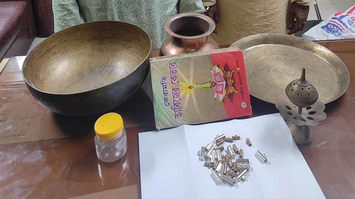 বুধবার (২৪ মে) বিকেলে কদমতলী থানার গিরিধারা আবাসিক এলাকায় বিশেষ অভিযান চালিয়ে তাদের গ্রেপ্তার করা হয়। গ্রেপ্তারের সময় তাদের কাছ থেকে পিতলের থালা, গামলা, ঘটি, আগরদানী, তাবিজ লেখার বই ও ২৯টি তাবিজের খোল জব্দ করা হয়।