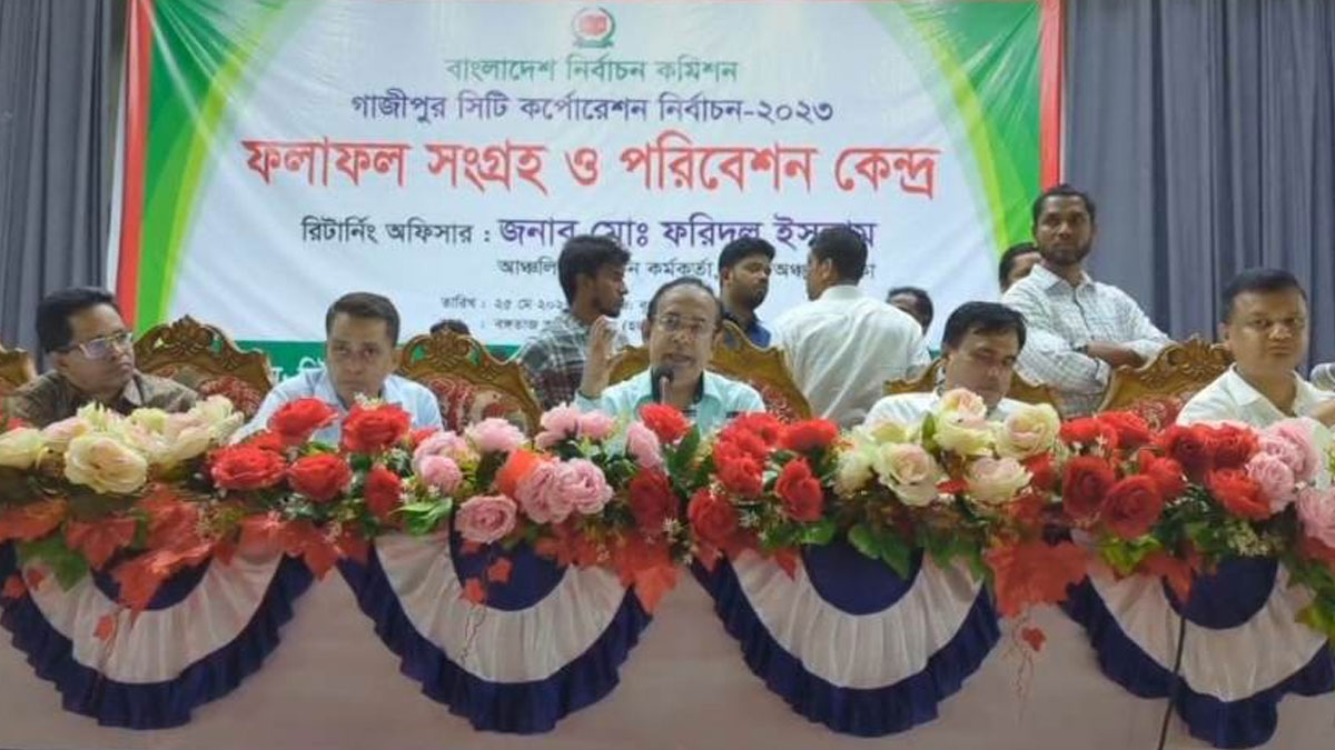 গাজীপুর সিটি করপোরেশন নির্বাচনের রিটার্নিং কর্মকর্তা মো. ফরিদুল ইসলাম বলেছেন, সারা বাংলাদেশের মানুষ গাজীপুর নির্বাচনের দিকে তাকিয়ে ছিলেন। গাজীপুরে অবাধ, সুষ্ঠু ও নিরপেক্ষ নির্বাচন করতে সক্ষম হয়েছে নির্বাচন কমিশন (ইসি)। এটা একমাত্র আপনাদের সহযোগিতার কারণে সম্ভব হয়েছে। আইন মেনে আইনের প্রতি শ্রদ্ধাশীল হয়ে আপনার যে সহযোগিতা করেছেন তা উদাহরণ হয়ে থাকবে।