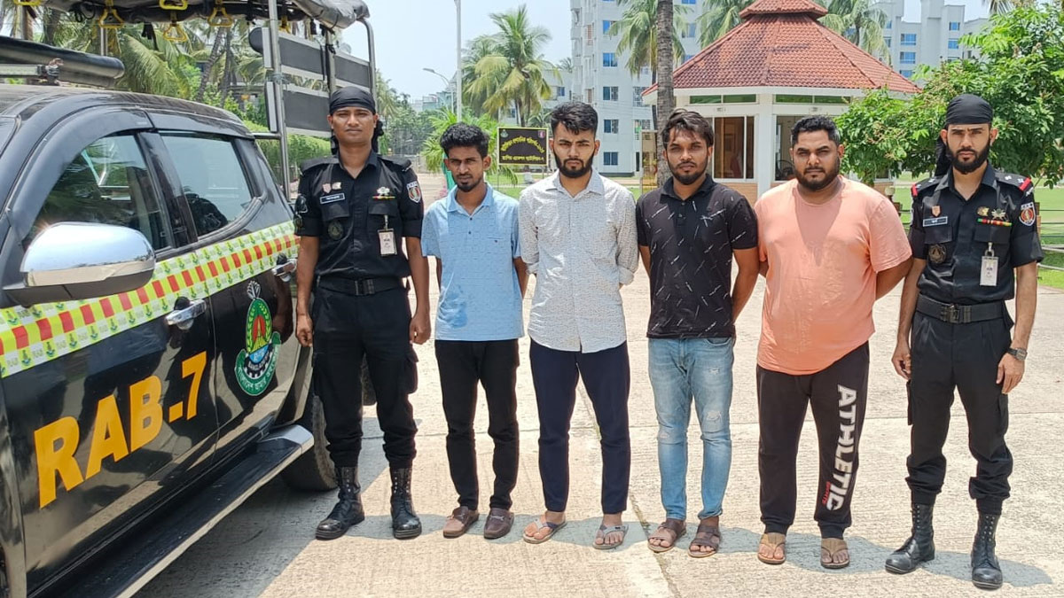 গ্রেপ্তাররা হলেন- আবু তাহের রাজীব (২৩), দেলোয়ার হোসেন জয় (২৭), রায়হান সজীব (২২) ও আবুল হাসনাত রানা (৩০)।