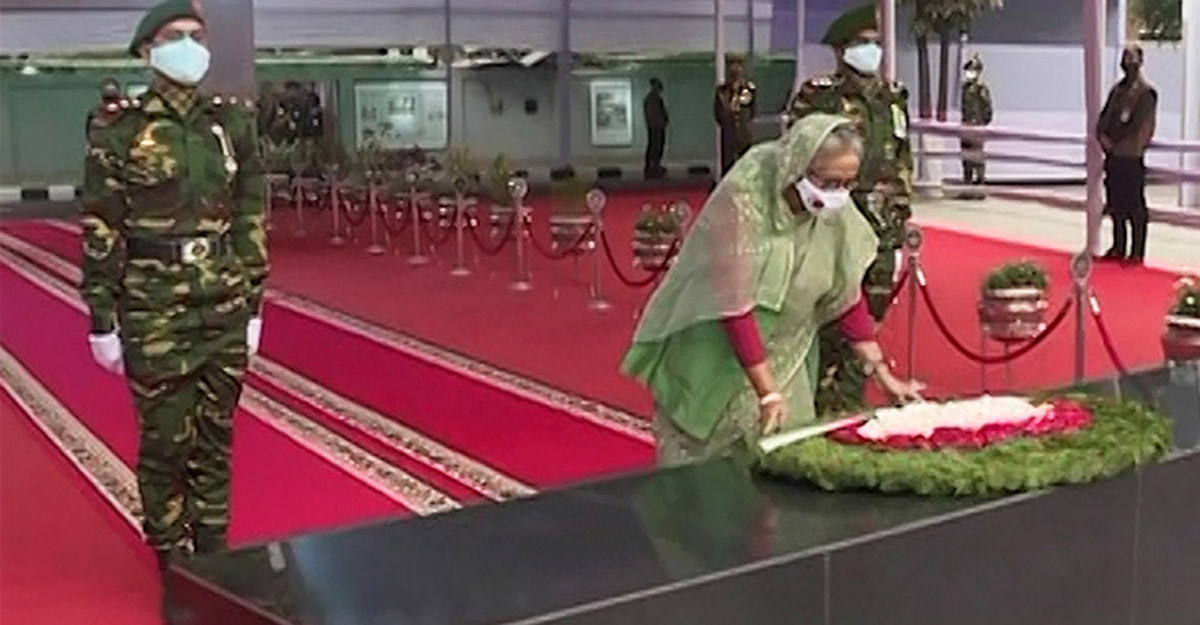 বঙ্গবন্ধুর প্রতিকৃতিতে প্রধানমন্ত্রীর শ্রদ্ধা