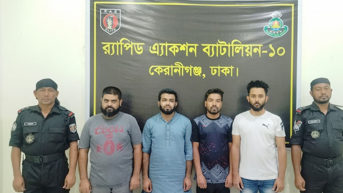 গ্রেপ্তার হওয়া অভিযুক্তরা হলেন, আরিফ আবেদীন ওরফে জিসান (৪৪), অনিক হোসেন (২৮), শাওন আহম্মেদ (২৭) ও নাসিম খান (২৮)।