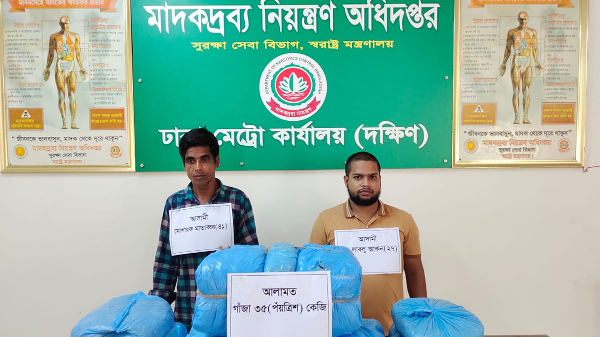 রাজধানীর যাত্রাবাড়ী থানাধীন এলাকা থেকে গাঁজাসহ দুই মাদক ব্যবসায়ীকে গ্রেপ্তার করেছে মাদকদ্রব্য নিয়ন্ত্রণ অধিদপ্তর (ডিএনসি)। গ্রেপ্তারের সময় তাদের কাছ থেকে ৩৫ কেজি গাঁজা ও মাদক পরিবহনে ব্যবহৃত একটি প্রাইভেটকার জব্দ করা হয়েছে।