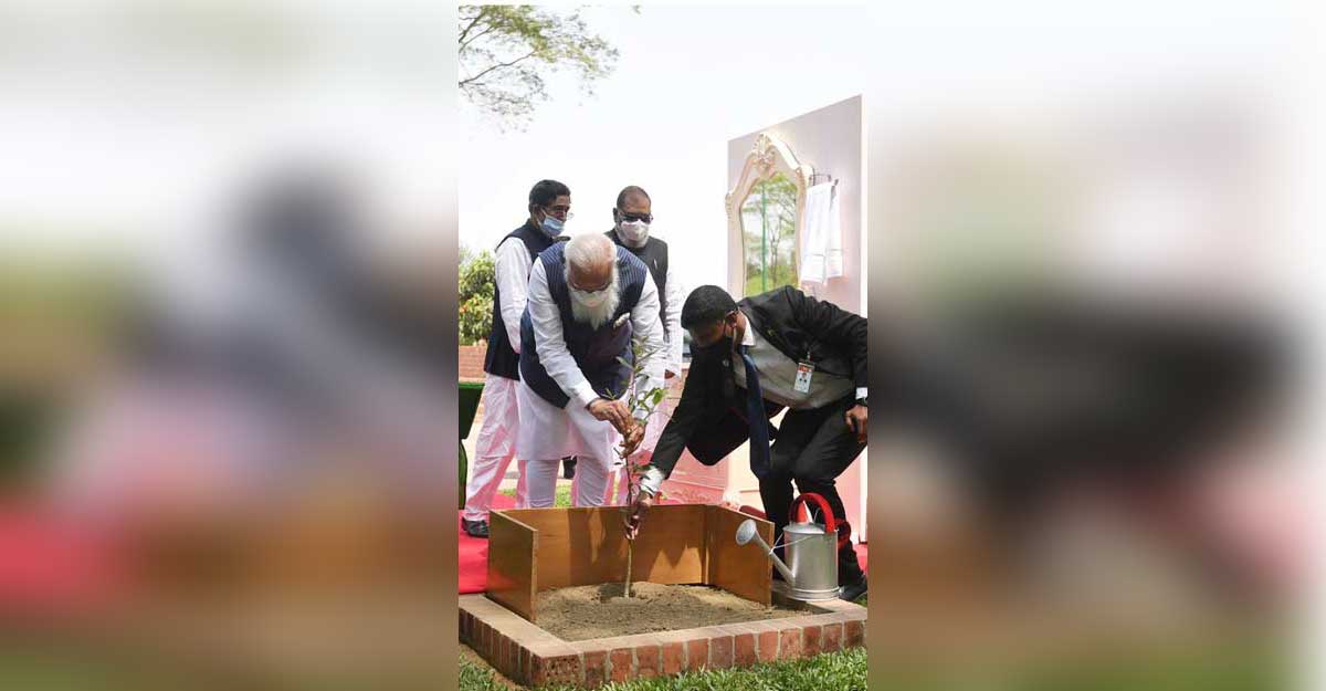 সাভারের জাতীয় স্মৃতিসৌধে বাংলাদেশের বীর শহীদদের প্রতি শ্রদ্ধা জানানো শেষে অর্জুন গাছের একটি চারা রোপন করেছেন ভারতের প্রধানমন্ত্রী নরেন্দ্র মোদি। ভারতের প্রধানমন্ত্রীর অফিসিয়াল টুইটার অ্যাকাউন্ট থেকে একটি টুইট করে বিষয়টি জানানো হয়েছে।