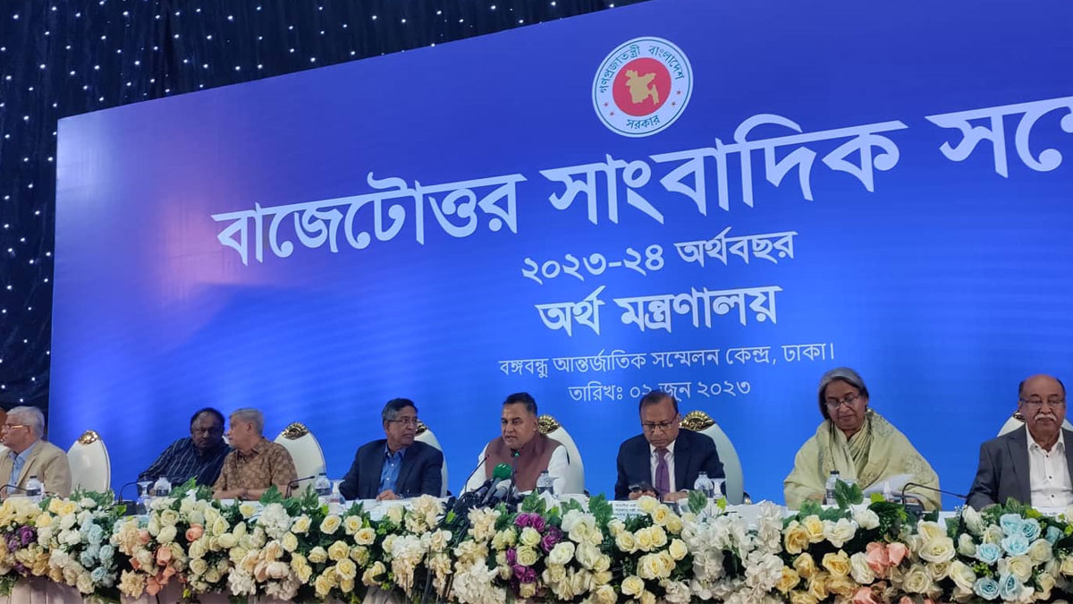 ২০২৩-২৪ অর্থবছরের জন্য প্রস্তাবিত জাতীয় বাজেট নিয়ে বাজেটোত্তর সাংবাদিক সম্মেলনের আয়োজন করেছে অর্থ মন্ত্রণালয়। শুক্রবার (২ জুন) দুপুরে রাজধানীর বঙ্গবন্ধু আন্তর্জাতিক সম্মেলন কেন্দ্রে বাজেটোত্তর সাংবাদিক সম্মেলনের আয়োজন করা হয়। তবে সংবাদ সম্মেলনে শব্দ গোলযোগের কারণে তা যেন একেবারেই ভেস্তে যাওয়ার মতো অবস্থা তৈরি হয়েছে। এ ঘটনায় বিরক্তি প্রকাশ করেছেন অর্থমন্ত্রীর সঙ্গে থাকা অন্যান্য মন্ত্রীরা।