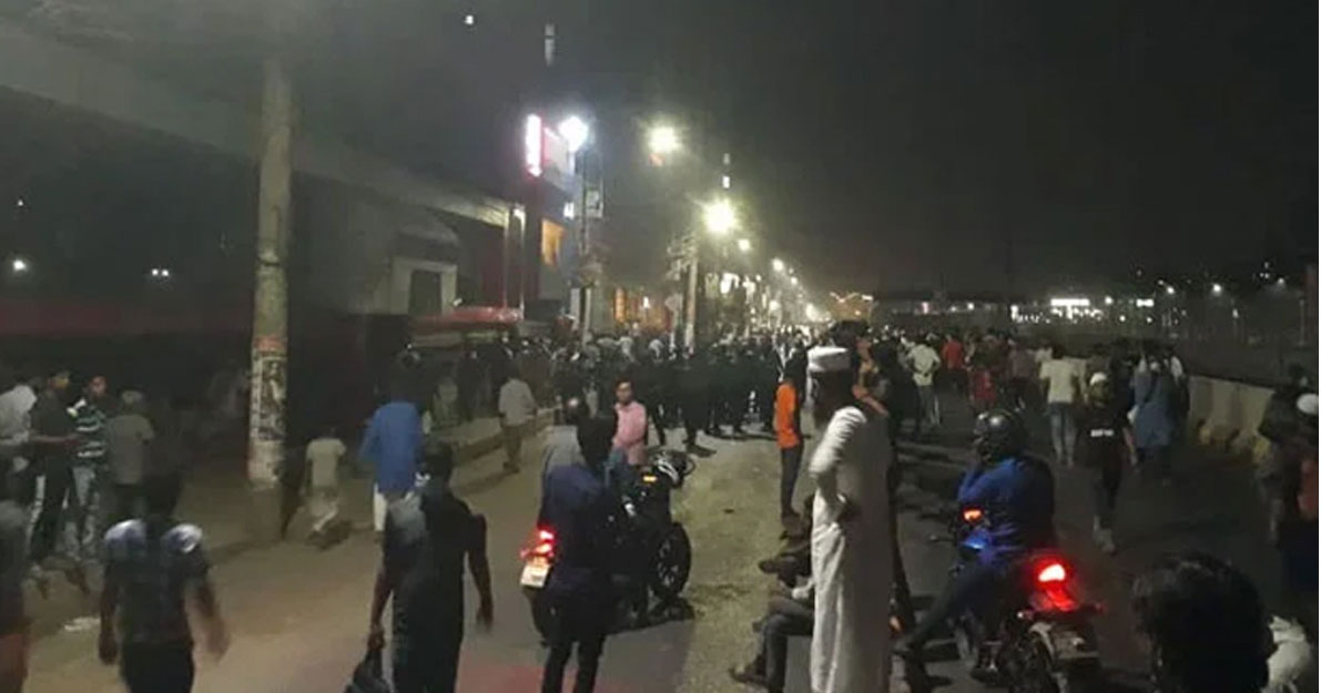 যাত্রাবাড়ীর সড়ক অবরোধ। পরে পুলিশ শক্তি প্রয়োগ করে অবরোধমুক্ত করে