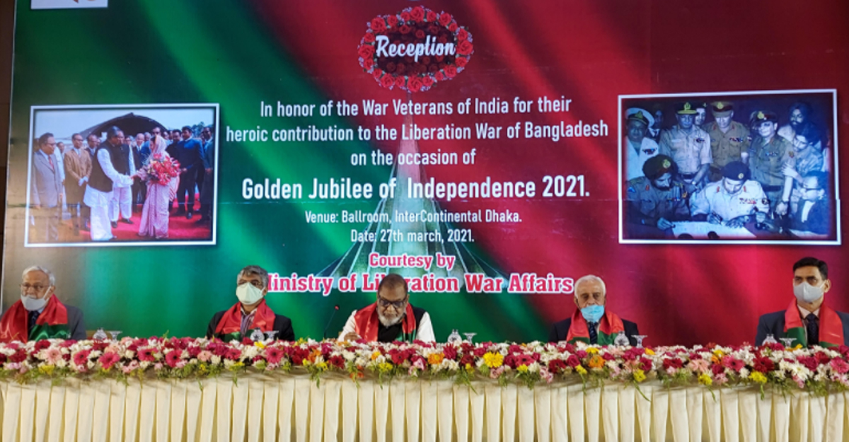 শনিবার (২৭ মার্চ) রাতে রাজধানীর একট হোটেলে মুক্তিযুদ্ধে সহায়তাকারী ভারতীয় সশস্ত্র বাহিনীর ৩০ সদস্যকে সংবর্ধনা দেওয়া হয়। মুক্তিযুদ্ধবিষয়ক মন্ত্রণালয় এ সংর্বধনার আয়োজন করে।