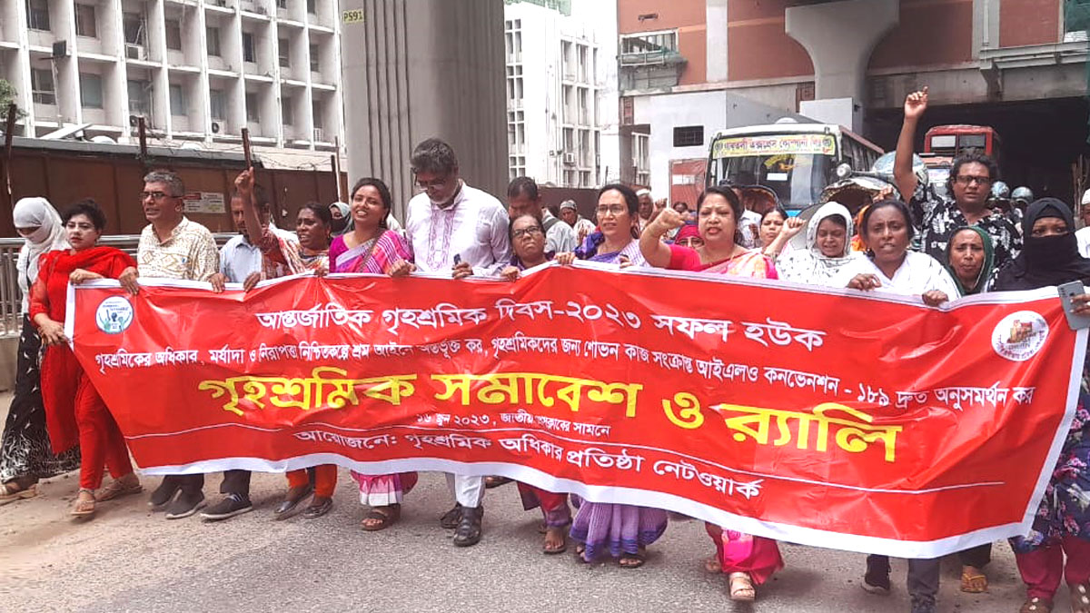গৃহশ্রমিকের অধিকার, মর্যাদা ও নিরাপত্তা নিশ্চিতকল্পে শ্রম আইনে অন্তর্ভুক্ত কর এবং গৃহশ্রমিকদের জন্য শোভন কাজ সংক্রান্ত আইএলও কনভেনশন-১৮৯ ও ১৯০ দ্রুত অনুসমর্থন কর এ শ্লোগানকে সামনে রেখে আন্তর্জাতিক গৃহশ্রমিক দিবস-২০২৩ উদযাপন উপলক্ষ্যে গৃহশ্রমিক অধিকার প্রতিষ্ঠা নেটওয়ার্ক-এর উদ্যোগে গৃহশ্রমিক সমাবেশ ও র্যালি কর্মসূচী অনুষ্ঠিত হয়।