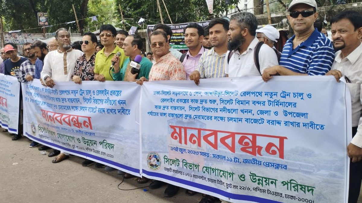 ঢাকা-সিলেট মহাসড়ক ৬ লেন বাস্তবায়ন, ঢাকা-সিলেট ও সিলেট-চট্টগ্রাম আন্তঃনগর বিরতিহীন ট্রেন চালুসহ ৫ দফা দাবি জানিয়েছে সিলেট বিভাগ যোগাযোগ ও উন্নয়ন পরিষদ।