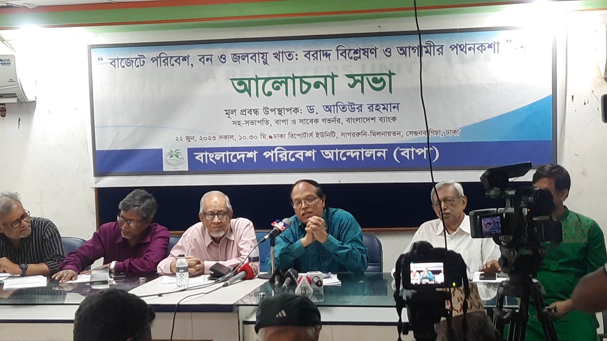 বৃহস্পতিবার (২২ জুন) দুপুরে ঢাকা রিপোর্টার্স ইউনিটির (ডিআরইউ) সাগর-রুনী মিলনায়তনে ‘বাজেটে পরিবেশ, বন ও জলবায়ু খাত: বরাদ্দ বিশ্লেষণ ও আগামীর পথনকশা’ শীর্ষক সংবাদ সম্মেলনে এসব কথা বলেন তিনি। বাংলাদেশ পরিবেশ আন্দোলন (বাপা) সংবাদ সম্মেলনটির আয়োজন করে।