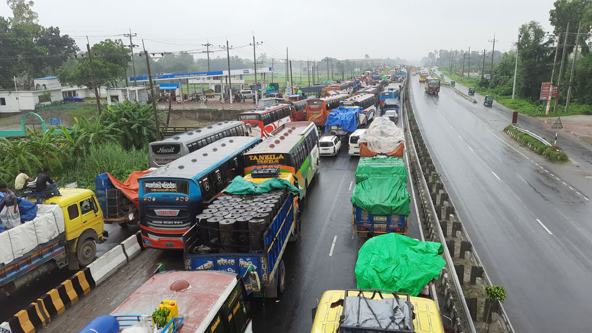 বাসের চালকরা বলেন, ঢাকা থেকে যানজট ঠেলে আসছি। মহাসড়কে চার লেন হলেও এলেঙ্গার যানজট মহাসড়কে গিয়ে ঠেকেছে। খুবই নাজুক অবস্থা।
