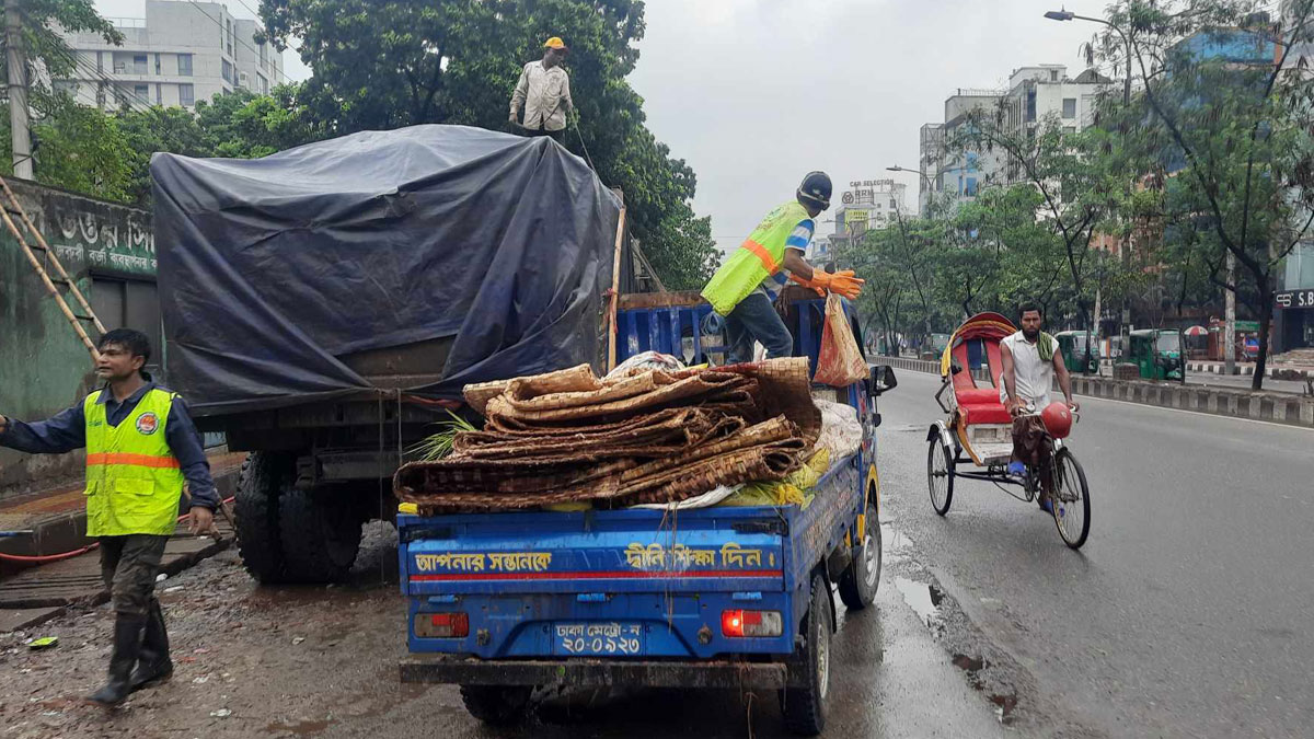 ঢাকা দক্ষিণ সিটি করপোরেশন (ডিএসসিসি) ২৪ ঘণ্টায় ও ঢাকা উত্তর সিটি করপোরেশন (ডিএনসিসি) ৮ ঘণ্টার মধ্যে বর্জ্য অপসারণের ঘোষণা দিয়েছে। সেই লক্ষ্যমাত্রা অর্জনের জন্য বৃষ্টির মধ্যেও দুই সিটি করপোরেশনের হাজার হাজার পরিচ্ছন্নতাকর্মী একযোগে কাজে নেমেছেন।