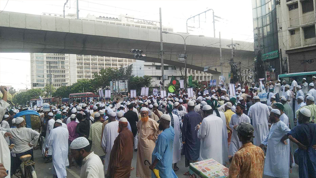 শুক্রবার (৭ জুলাই) জুম্মার নামাজ শেষে বায়তুল মোকাররম মসজিদের উত্তর গেটের সিঁড়িতে সংক্ষিপ্ত সমাবেশ করে দুপুর ২টা ৩৫ মিনিটে এ বিক্ষোভ মিছিল বের করেন তারা।